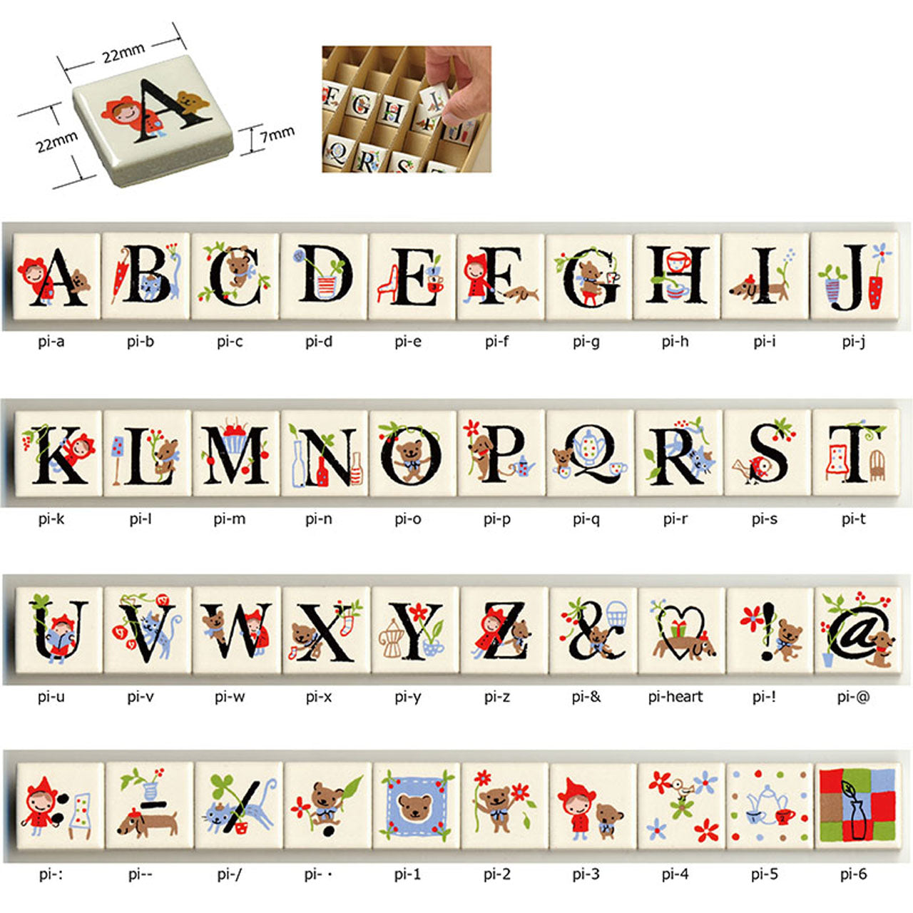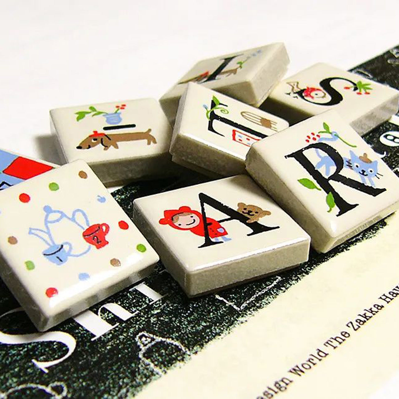 愛らしいイラストが入ったアルファベットの22mm角タイル!