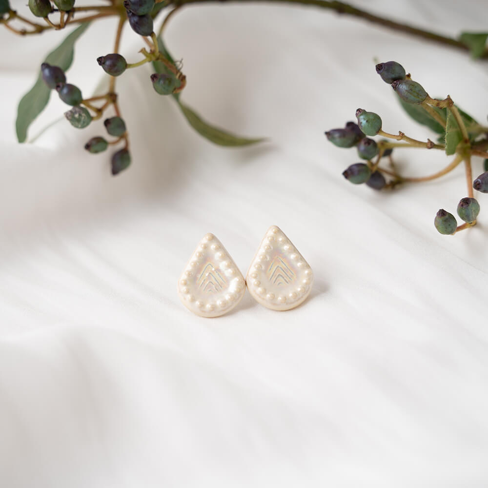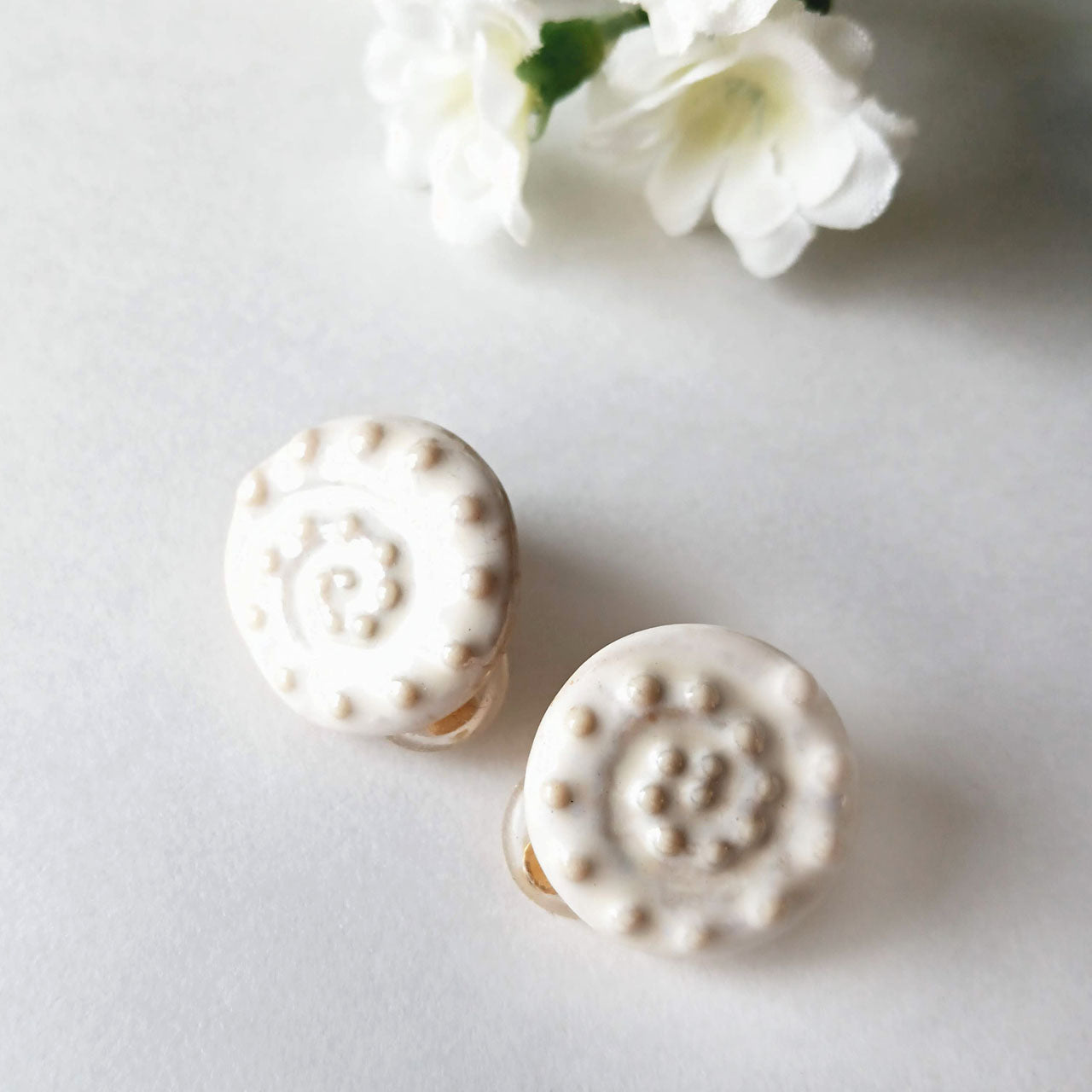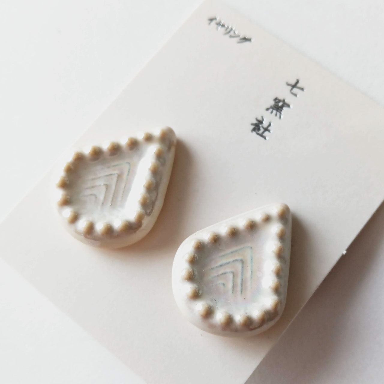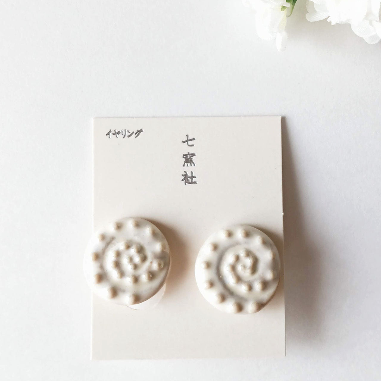 乳白色の釉薬がまるで真珠のように繊細な輝きを放ち、耳元を上品に彩ります。