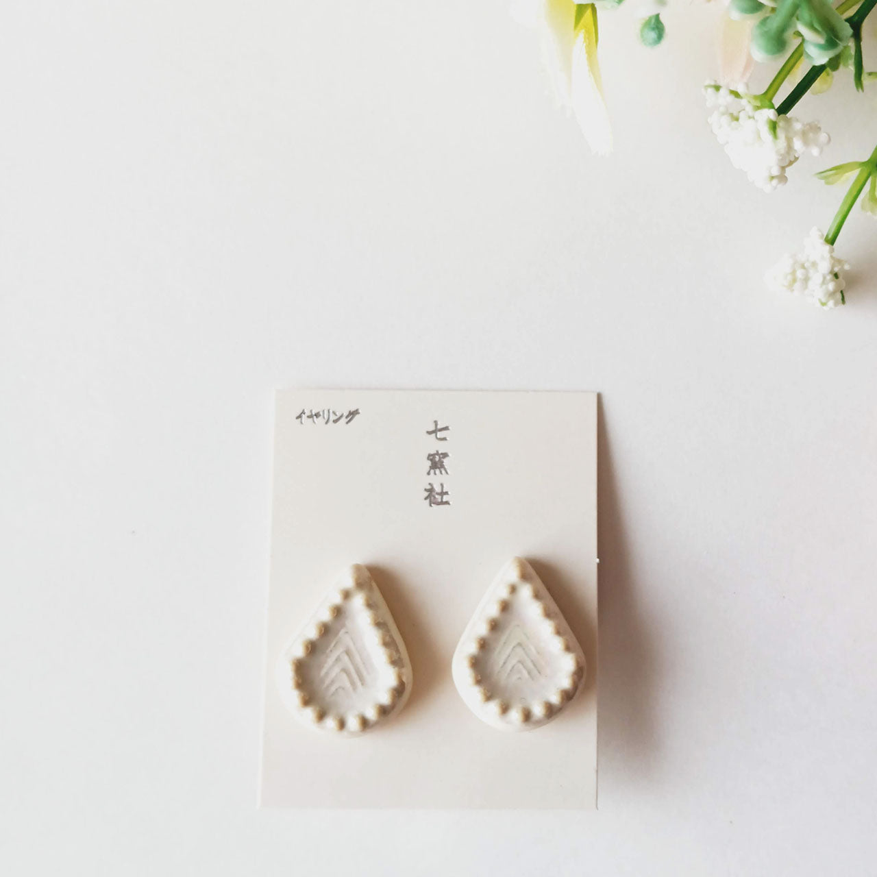 【七窯社】人魚の涙 イヤリング ピアス 陶器の手作りアクセサリー