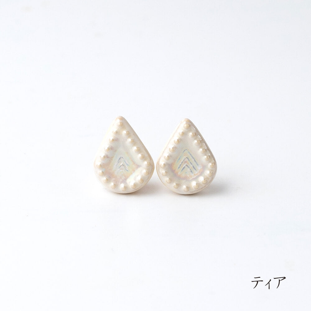 フォルムも豊富で、やさしい輝きとともに日常にそっと寄り添う陶器製イヤリング・ピアスです。