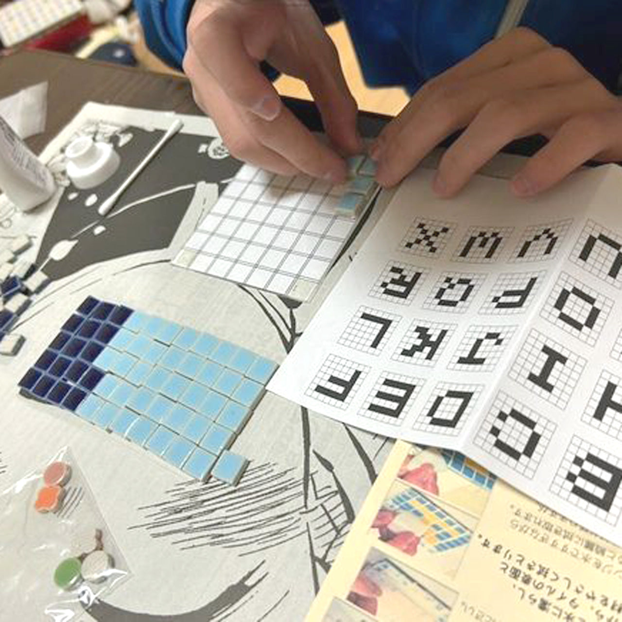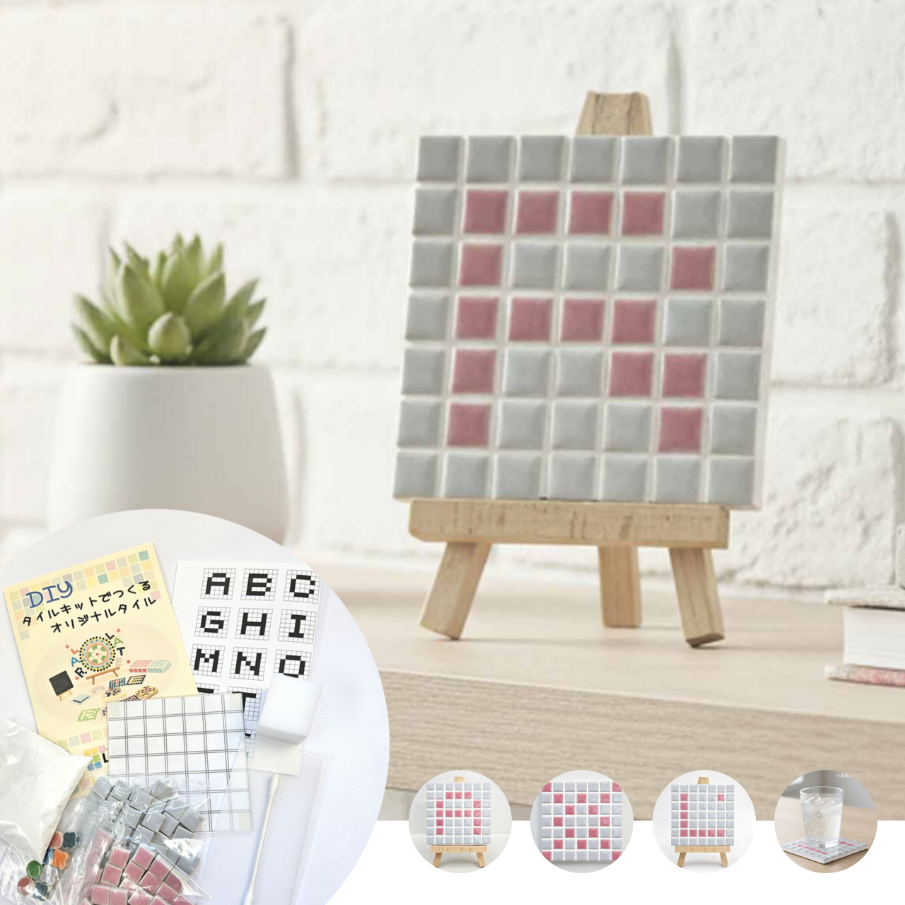 ふんわりとしたピンクと落ち着きのあるグレーの組み合わせで、アルファベットや模様を自由にデザインできるDIYモザイクタイルキットです。初心者でも安心して楽しめる設計図付きで、コースターやインテリア雑貨、手作りギフトにも最適。やさしい色合いが、ナチュラルな空間にもよく馴染みます。