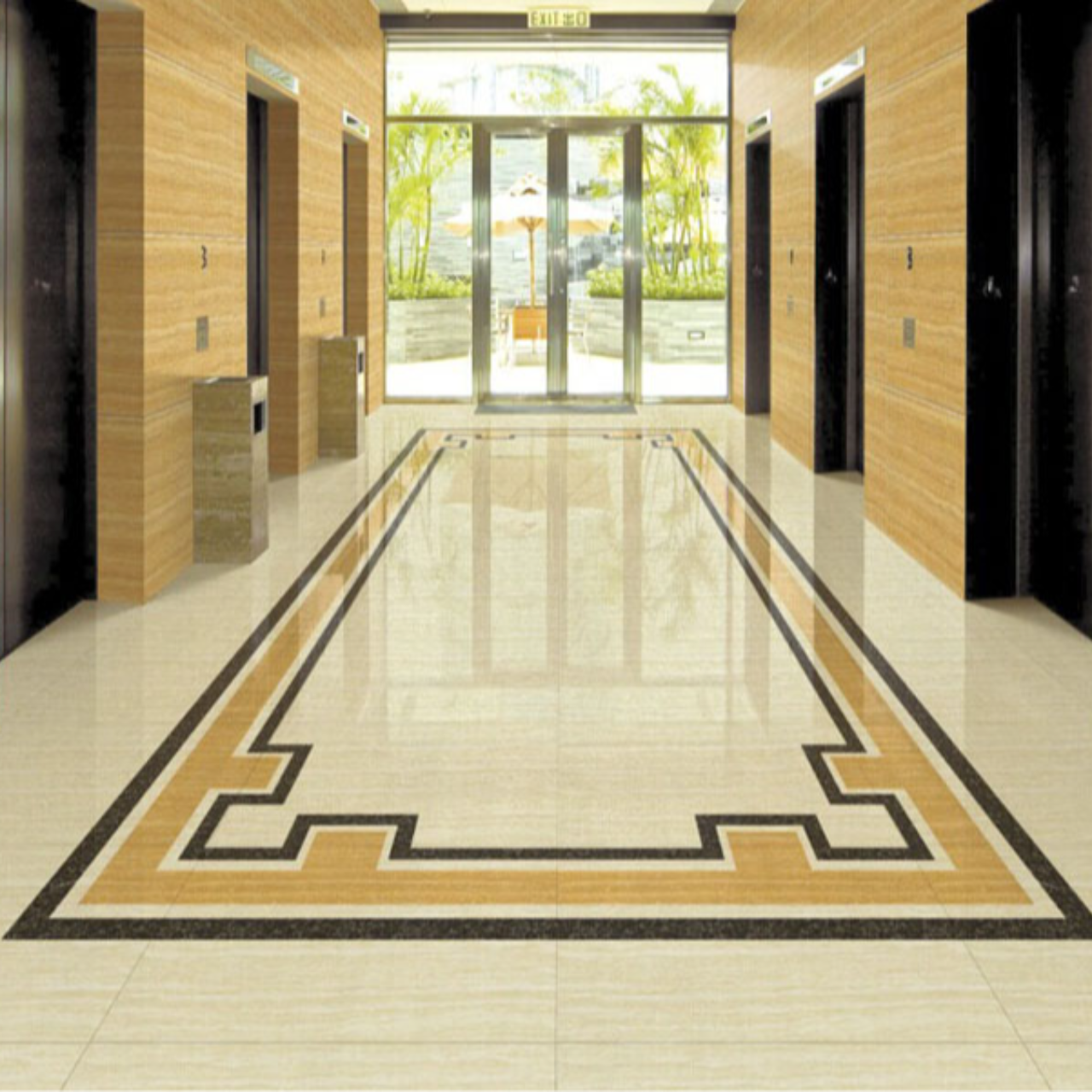 天然石の優美な紋様を最新のセラミック技術で忠実に再現した、磁器質タイル 。 鏡面のように磨き上げられた表面が光を美しく反射し、空間をより明るく、贅沢な印象へと導きます 。